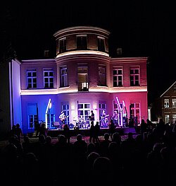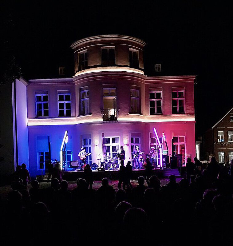 Noch vor der offiziellen Einweihung der Freiluftbühne im Garten des denkmalgeschützten Hauses Klosterstraße 7, fand bereits am 02. Juli das erste Konzert statt. Die neue Terrasse, die auch als Bühne für Theateraufführungen und Konzerte technisch ausgestattet ist, wurde von uns gemeinsam mit dem Eigentümer Thomas Weritz errichtet. An der Finanzierung beteiligten sich die NRW-Stiftung, die Sparkasse Münsterland Ost und die Stadt Warendorf.